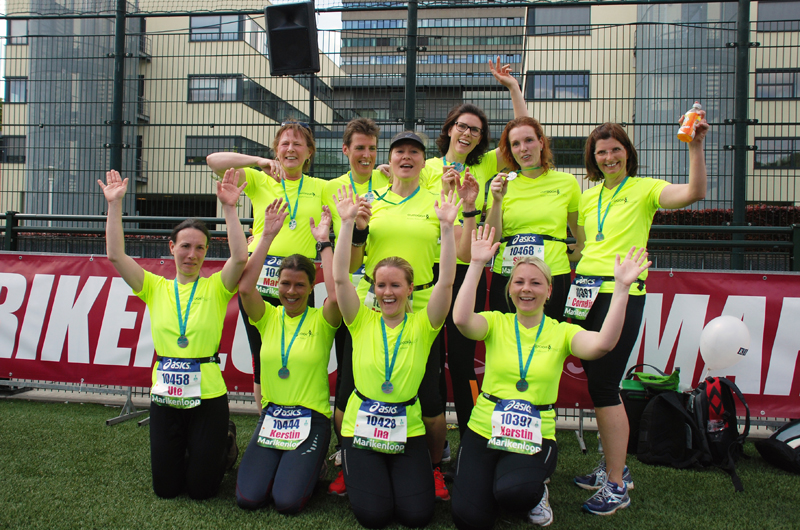 | Das Team der Breetlook-Runners (v.l.) mit Läufer und Unterstützer:Andrea Schraetz, Yvonne Lipinski, Barbara Glaum, Andrea Rennemann, Annette Pfaffenhöfer, Tina Arnus, Bettina Neumann, Constanze Maguin, Christine Plathen, Gitte Grühnke, Nathalie Kock. |
