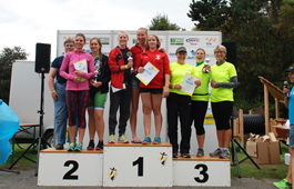 | Das Team der Breetlook-Runners (vlnr) auf dem 3. Podestplatz: Annette, Yvonne, Hannelore |
