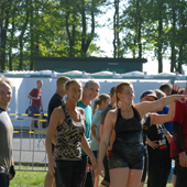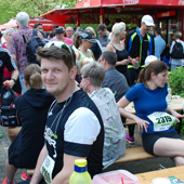 | 10 km. Hinten von links: Christian , Susanne, Julia, Tünde, Tanja und Vanessa Vorne rechts : Adrian Fans: Anton, Julian, Annette, Tobias, Sarah und Christian |