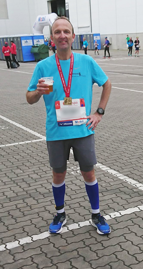 Für Roland ging es an diesem Tag bereits am Morgen über die Marathondistanz von 42,195 km quer durch Hamburg. Trotz Hamburger Schietwetter schaffte er mit 3 Stunden und 28 Minuten ein hervorragendes Ergebnis.