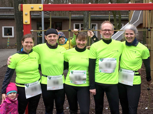 | Von links: Tanja, Adrian, Annette, Christian, Vanessa und der zukünftige Laufnachwuchs Sarah und Julian |