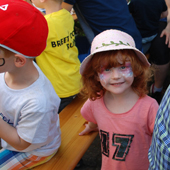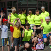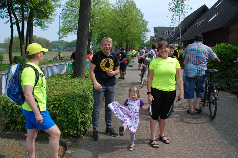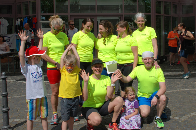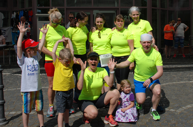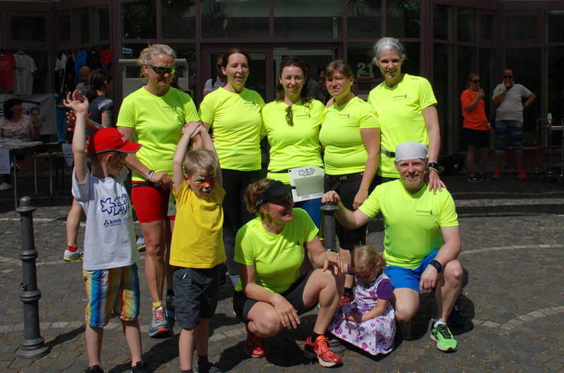 | 10 km. Hinten von links: Christian , Susanne, Julia, Tünde, Tanja und Vanessa Vorne rechts : Adrian Fans: Anton, Julian, Annette, Tobias, Sarah und Christian |