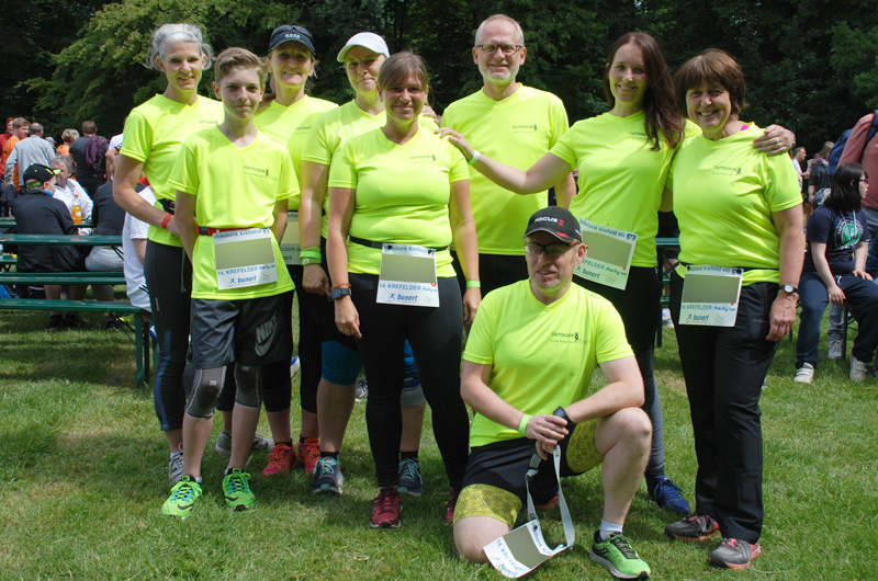 Adrian, Gitte, Gitti, Julia, Tanja, Vanessa, Yannik, Yvonne bildeten die beiden Staffelteams und absolvierten bestgelaunt den 4 mal 2,5 km Rundkurs mit einer starken Teamleistung und erreichten einen beachtlichen 8. und 10. Platz. Bestzeit.