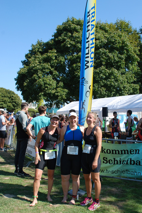 Isabelle hat bereits vor einigen Jahren den Triathlon in Willich mitgemacht. Wegen der diesjährigen Hitze hatten sowohl Isabelle als auch Yvonne nicht so viele Laufkilometer in den Beinen. Das merkten beide in der letzten Disziplin und im Schlusssprint. Am Ende siegte aber bei beiden die Freude über die tolle Leistung. Wir überlegen nächstes Jahr mit zwei, drei Staffeln anzutreten und an den Erfolg von 2016 (3. in der Staffelwertung der Frauen) anzuknüpfen.