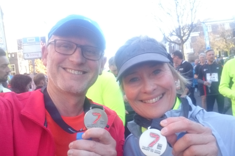 Am Sonntag, den 18. November nahm Gitti von den Breetlook-Runners an Ihrem ersten Zevenheuveloop zusammen mit Annette und Christian teil, die diesen Lauf nun zum zweiten Mal liefen. Der Zevenhuevelenloop in Nijmegen steht für Tradition; findet der 15 km Lauf nun schon zum 35. Mal statt. Über 20.000 Loopers machten sich auf über die 7 Hügel und meisterten einen Höhenunterschied von insgesamt 170 Metern. Auf Grund der hohen Teilnehmerzahl wurden die Läufer aus 9 Startfeldern heraus nacheinander auf die schöne und abwechslungsreiche Strecke geschickt. Leider war das Wetter auch traditionsgemäß kalt, aber nach den ersten 3 km kam der erste Hügel, der dann für ordentlich Wärme sorgte. Die anfängliche Nervosität von Gitti vor Ihrem ersten 15er wandelte sich schnell in Lauffreude um. Sie genoss den schönen Lauf und blieb deutlich unter Ihrer geplanten Zielzeit, natürlich in persönlicher Bestzeit. Da hat sich das Training auf den Schaephuysener Höhen gelohnt. Auch für Annette und Christian lief es sehr rund. Ebenfalls persönliche Bestzeiten. Fazit: Nächstes Jahr wieder. Ein besonderer Dank geht an Mustafa, der am Rande der Strecke wohl am meisten gefroren hat.